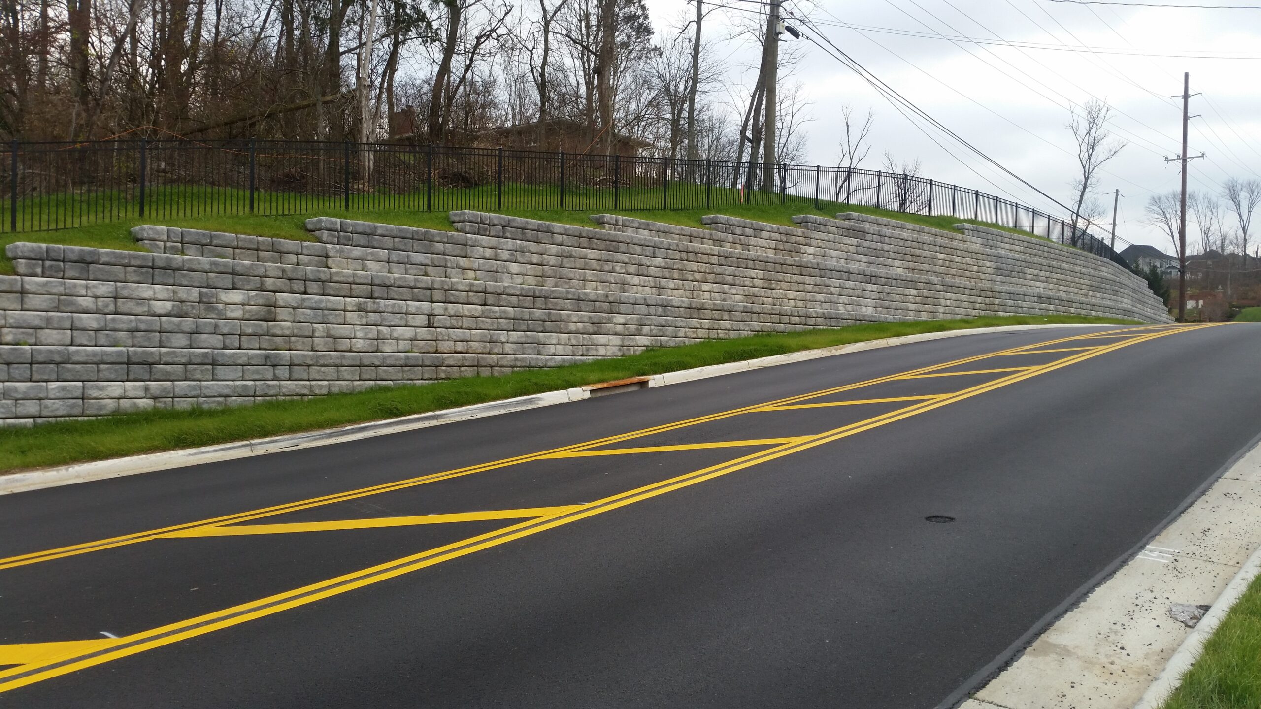 All eight retaining walls were designed by JC Hines & Associates, with Redi-Rock blocks supplied by Redi-Rock Structures of OKI. The final face area of the walls exceeded 11,250 square feet.
