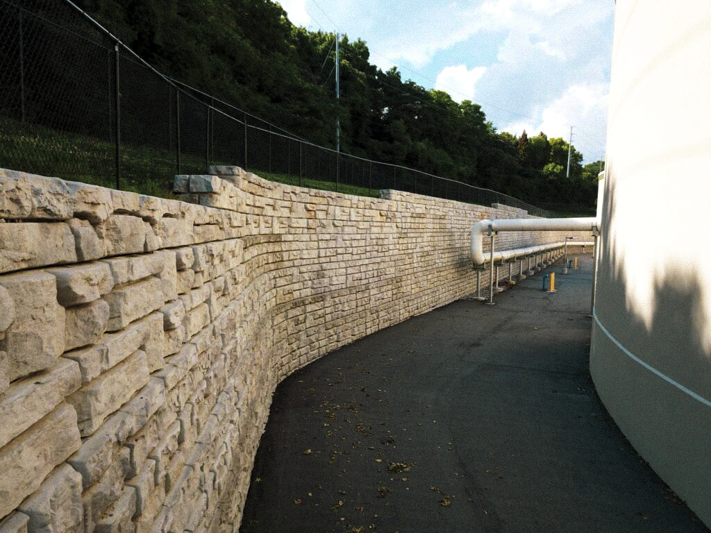 City officials in Chattanooga announced a plan to prevent wastewater from their combined sanitary sewer system from overflowing into the Tennessee River. The plan suggested that three massive storage tanks with a collective capacity of 30 million gallons be installed at the Hamm Road Equalizer Station. Because of the size and significance of the tanks, a maintenance access road adjacent to the tanks was required, but the only way to create access was with a strong retaining wall.